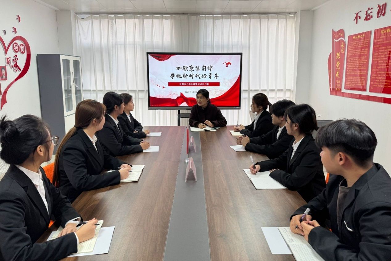 宣讲中,国际商务学院党总支负责人结合青年成长规律与时代发展需求,从新时代青年使命、筑牢思想根基、严守纪律底线和营造廉洁氛围四个方面展开阐述,强调青年学子作为民族复兴生力军,需以廉洁品格筑牢成长根基,带动身边人共筑清风校园。整场宣讲案例鲜活、贴近实际,让学生深刻认识到廉洁自律的重要性,有效强化了学生干部的规则意识与责任担当。最后,党总支负责人提出要求,希望大家将廉洁理念融入学习生活,做到明大德、守公德、严私德,努力成长为忠诚干净担当的新时代青年。