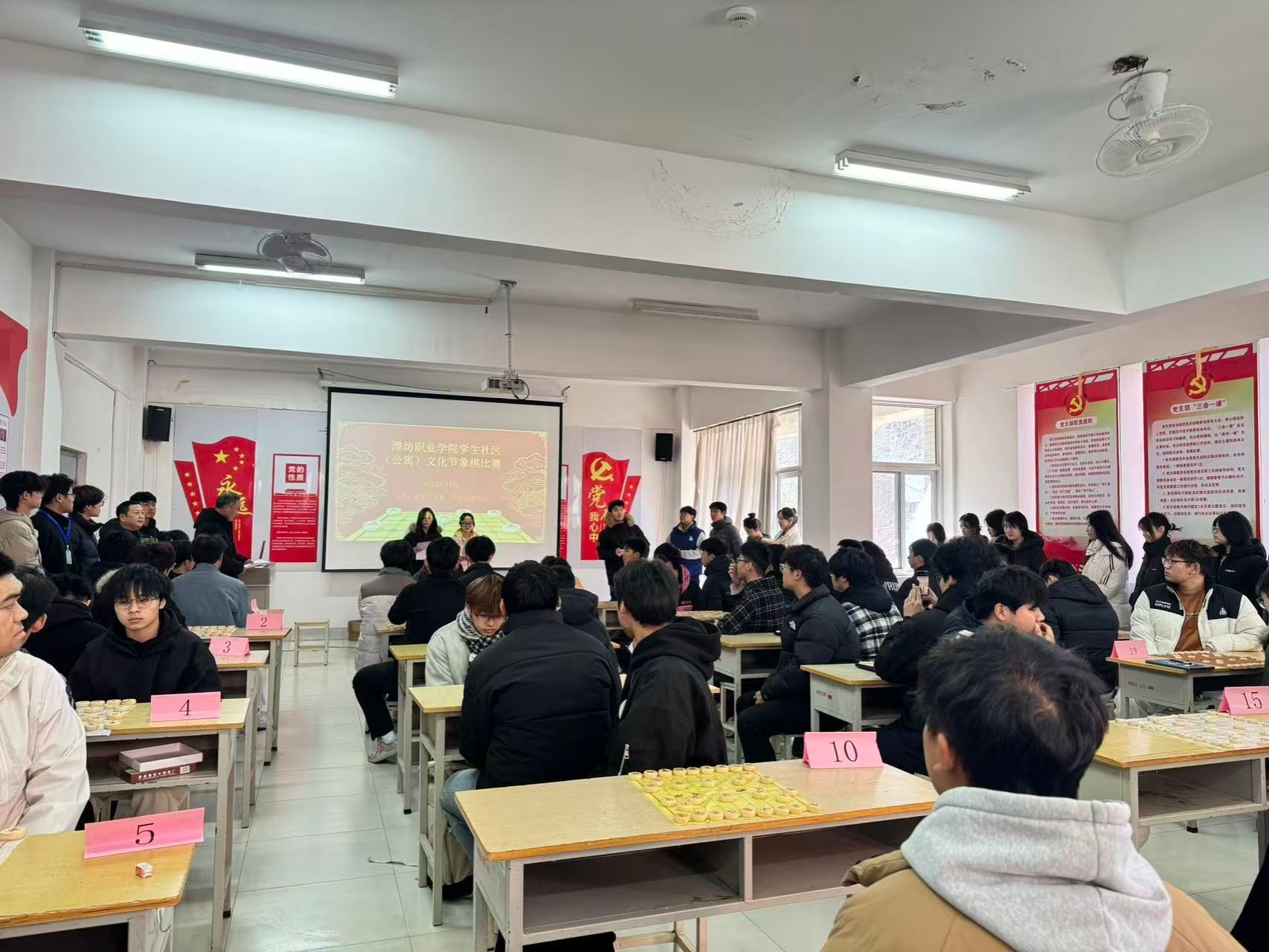 为弘扬中华优秀传统象棋文化,丰富校园文化生活,增进棋艺爱好者之间的交流与友谊,11月27日,潍坊职业学院学生社区(宿舍)大学生象棋比赛在滨海校区承泽一号楼二楼学生社区(宿舍)活动室成功举办。